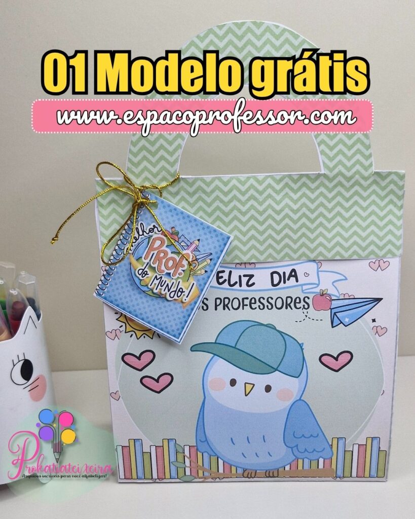 E, claro, nada melhor do que um mimo cheio de afeto para representar toda essa gratidão! Pensando nisso, preparei um modelo gratuito de lembrancinha para o Dia dos Professores, perfeito para imprimir, montar e presentear!
