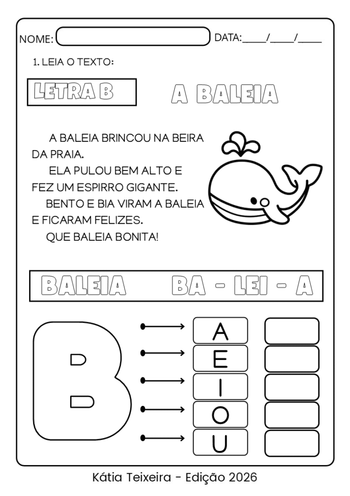 Atividades de Alfabetização letra B. Apostila de A a Z aqui https://profeclube.com/alfabetizando-com-textinhos-de-a-a-z/