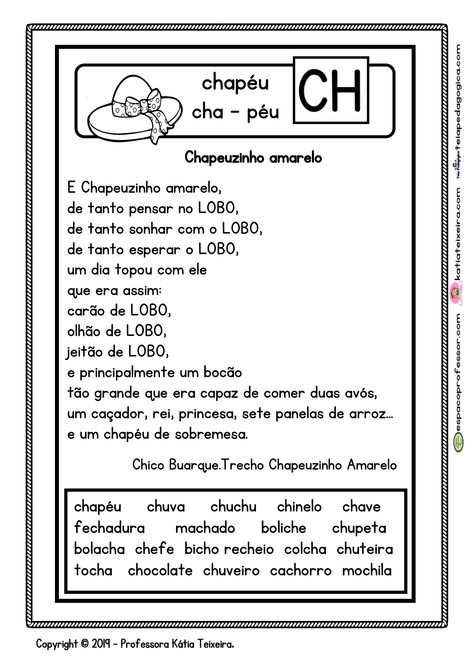 Atividade Chapeuzinho Amarelo com ficha de leitura. O que é dígrafo? É o que temos quando duas letras representam um único fonema. Eles podem ser de dois...