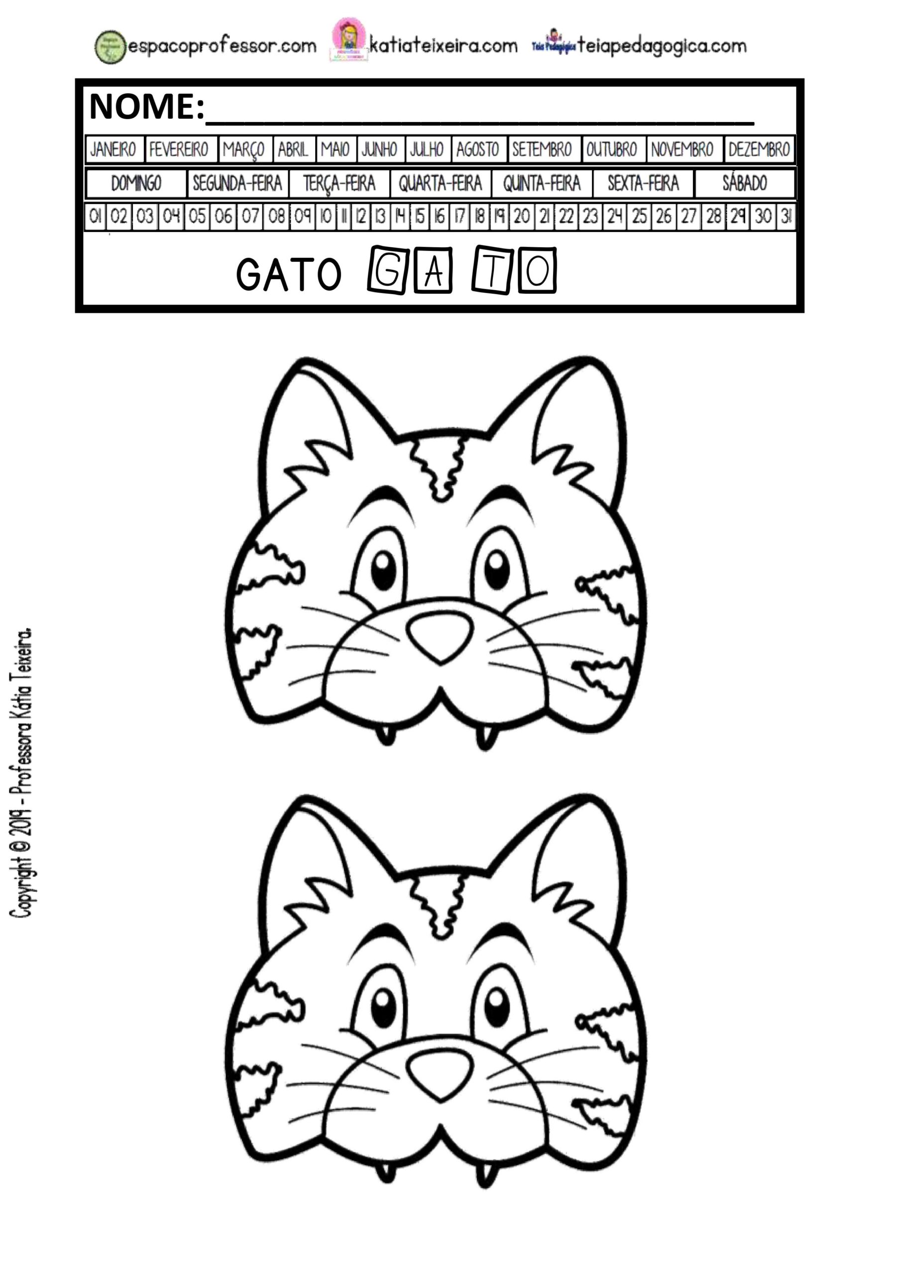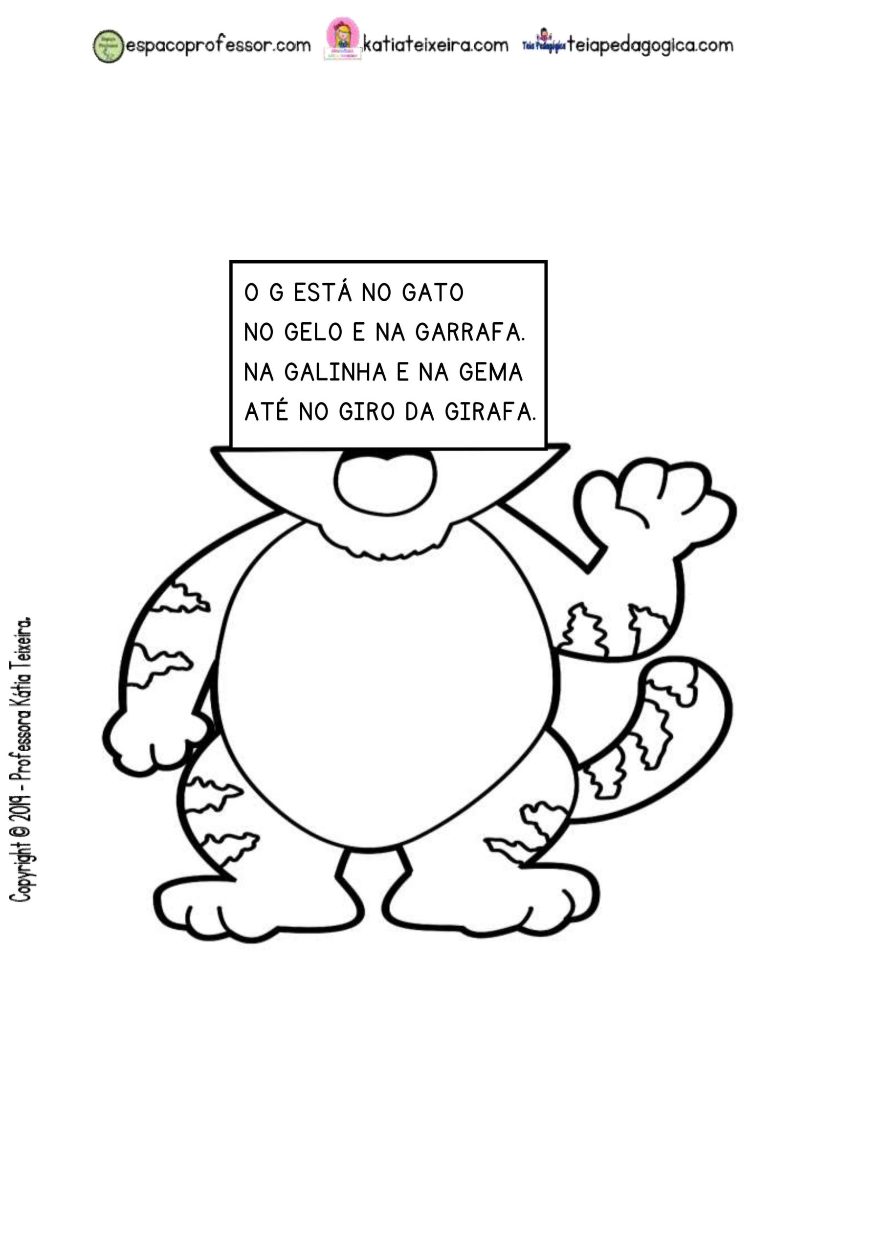 O texto do Gato pode ser utilizado para trabalhar a letra G, solicitando que a criança procure no texto palavras que começam com a letra mencionada.