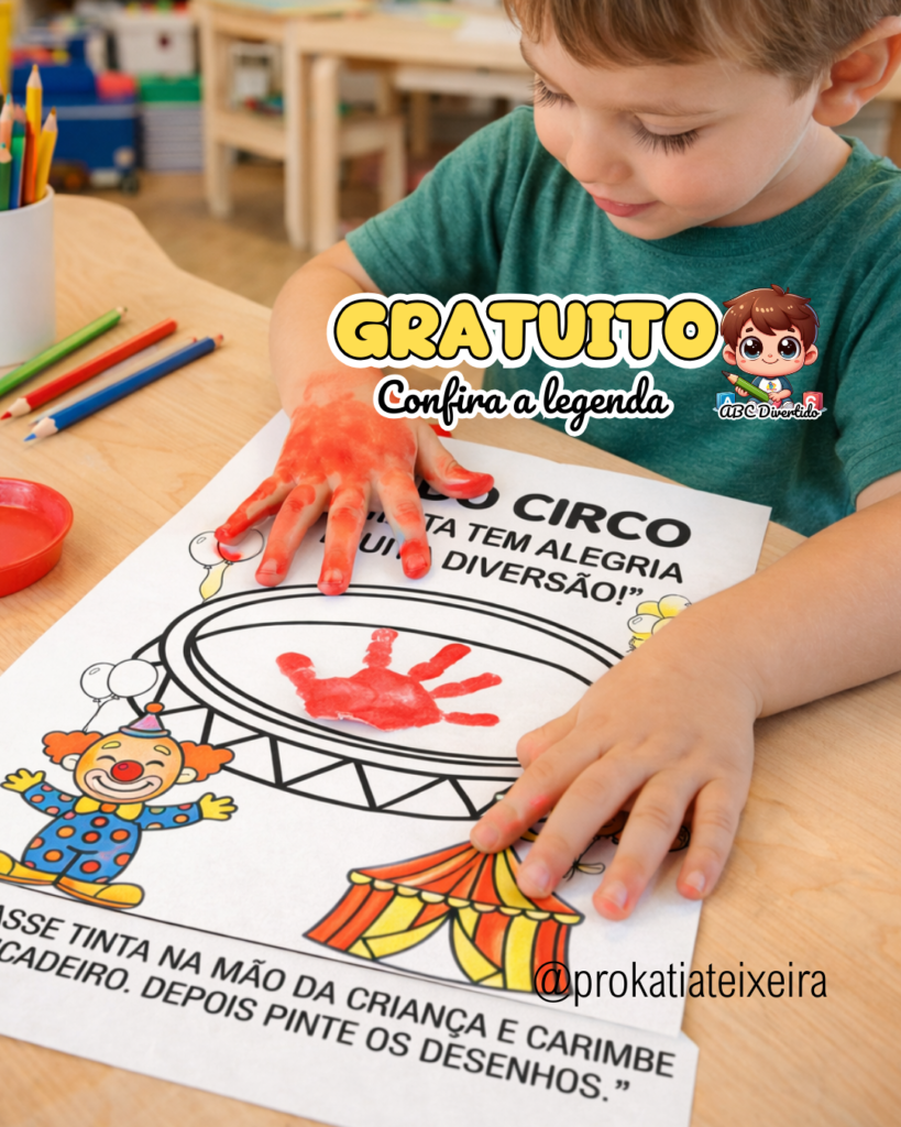 A atividade de pintura com as mãos é ideal para a educação infantil, especialmente com temas lúdicos como o circo. Além de encantar as crianças, ela estimula a coordenação motora, a percepção sensorial e a criatividade.