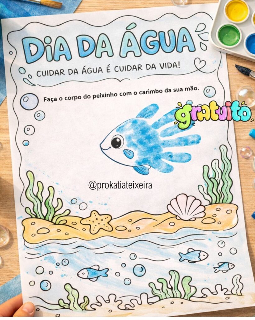 Trabalhar datas comemorativas na Educação Infantil é uma excelente forma de unir aprendizagem, criatividade e conscientização. Pensando nisso, esta atividade do Dia da Água propõe algo simples, divertido e extremamente significativo: criar um peixinho utilizando o carimbo da mão da criança.
