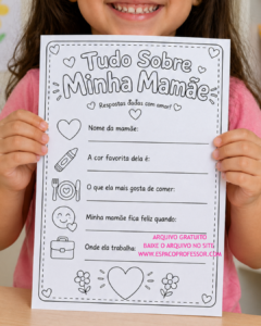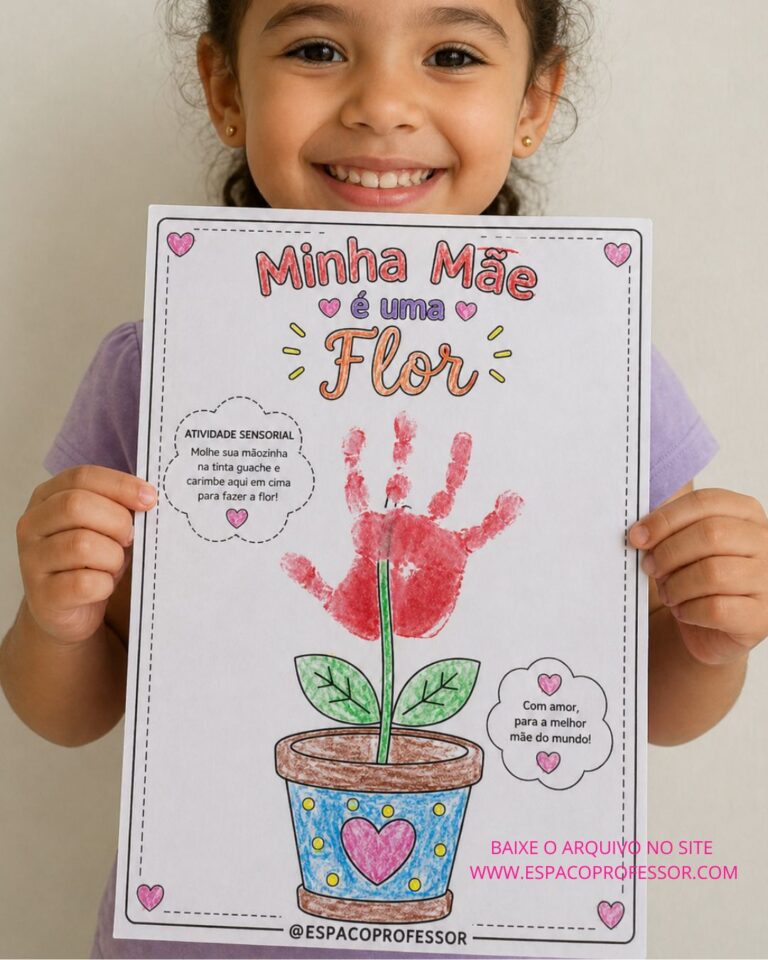 Essa atividade é excelente para montar lembrancinhas, mural escolar ou enviar como tarefa especial de Dia das Mães.
