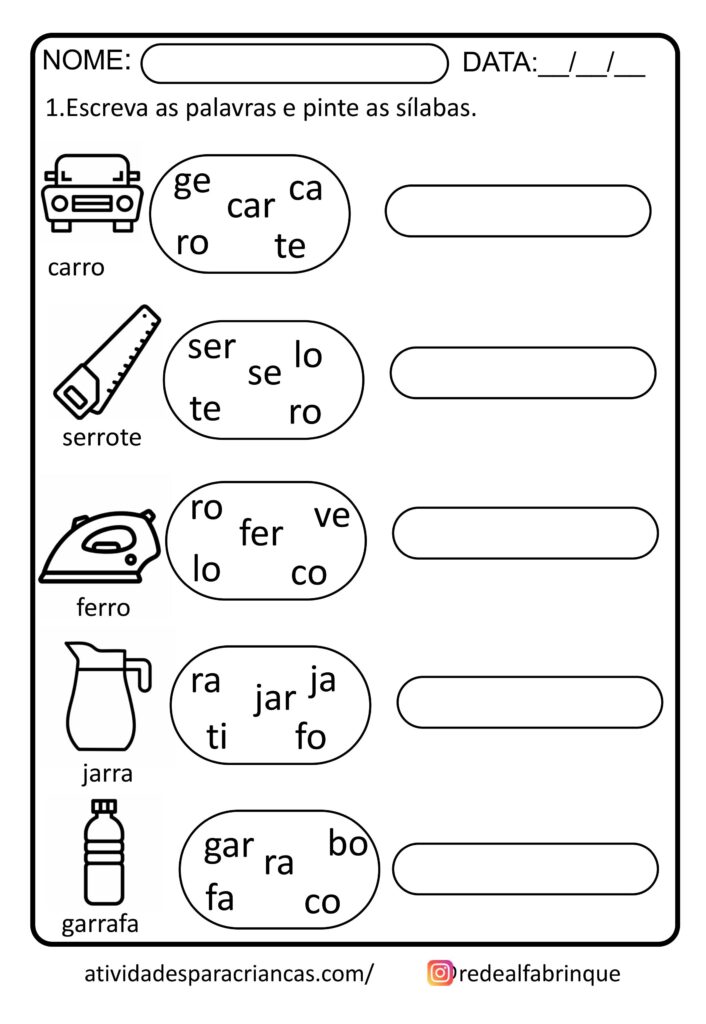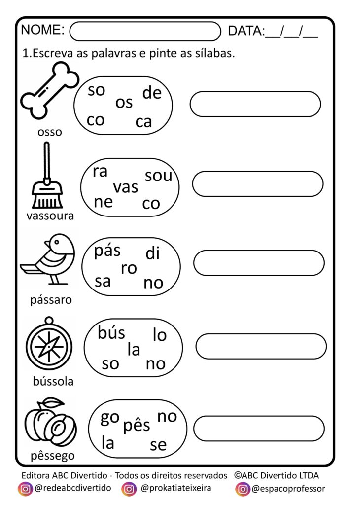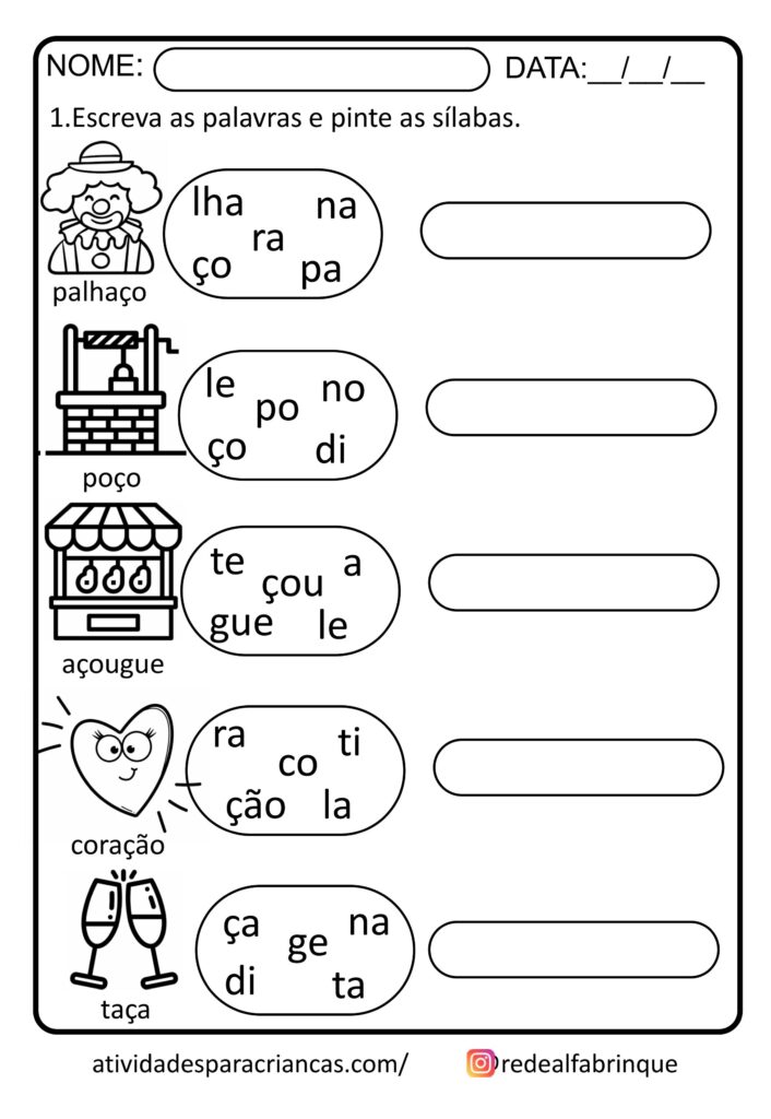 ✔ Atividades variadas com sílabas complexas