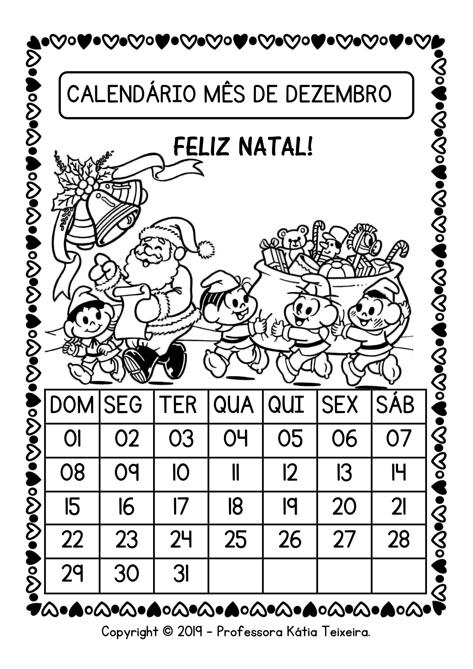 Calendário dezembro turma da Mônica