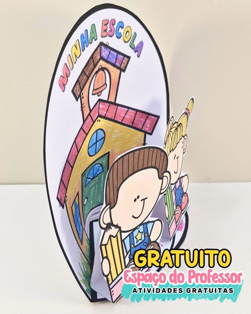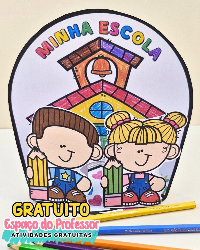 • A ilustração da escola com a escrita “MINHA ESCOLA”