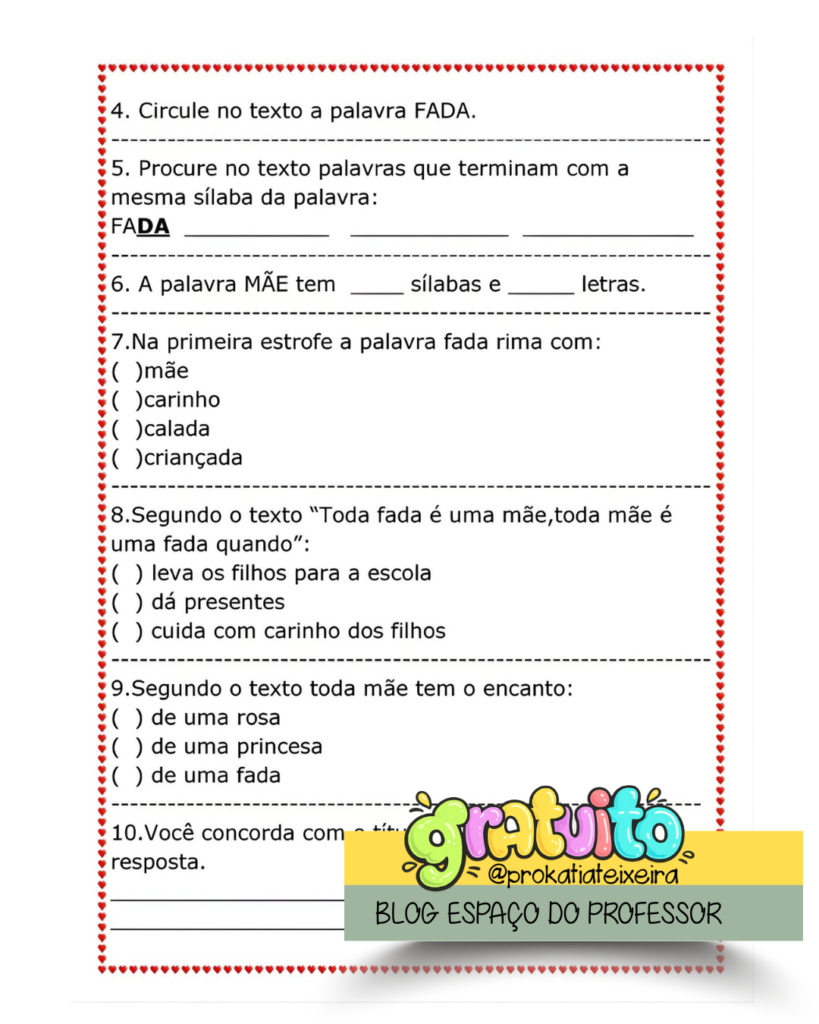 Tema: O encanto do poema “Toda mãe é uma fada”