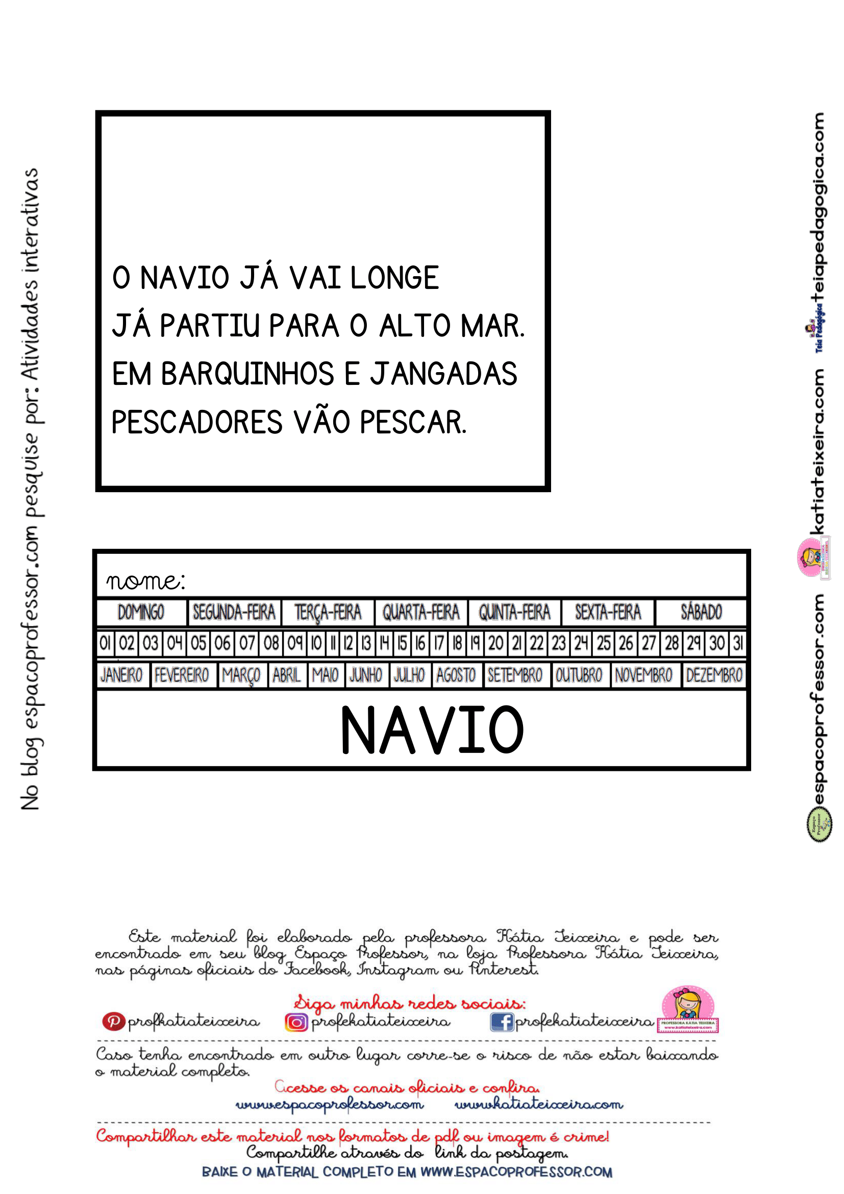 Para baixar clique em cima da imagem: Leitura divertida palavra navio.