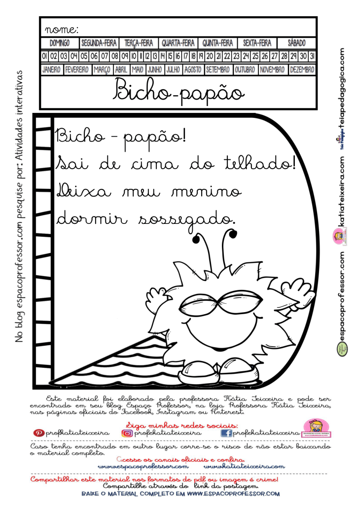 Leitura interativa bicho-papão letra cursiva. Essa atividade Leitura interativa bicho-papão letra cursiva é mais uma da nossa coleção de atividade lúdic....