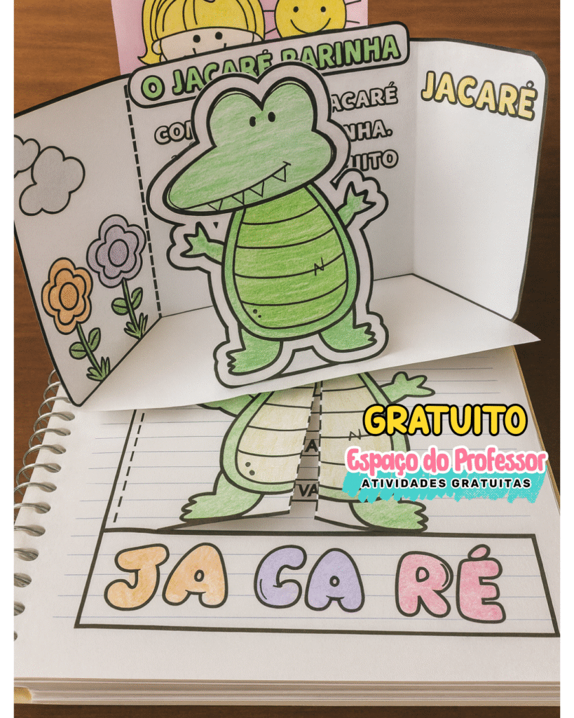 Leitura interativa com atividades e cenário o jacaré farinha.