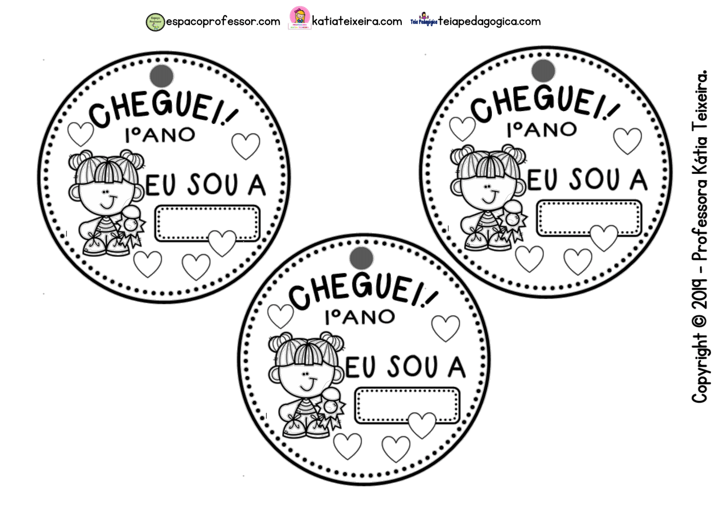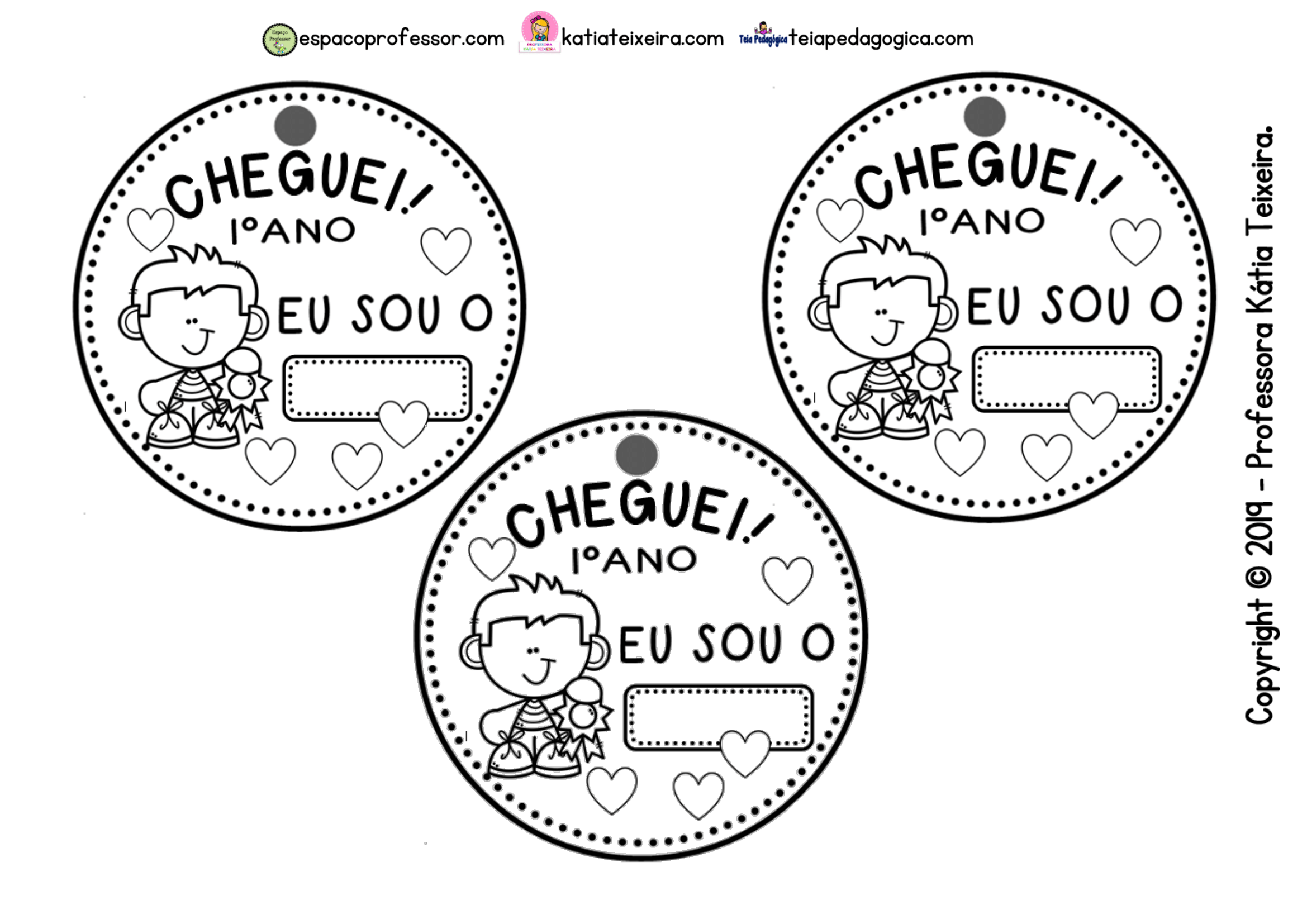 Deixei um espaço para que a criança possa colocar seu nome facilitando a identificação e socialização neste primeiro dia.