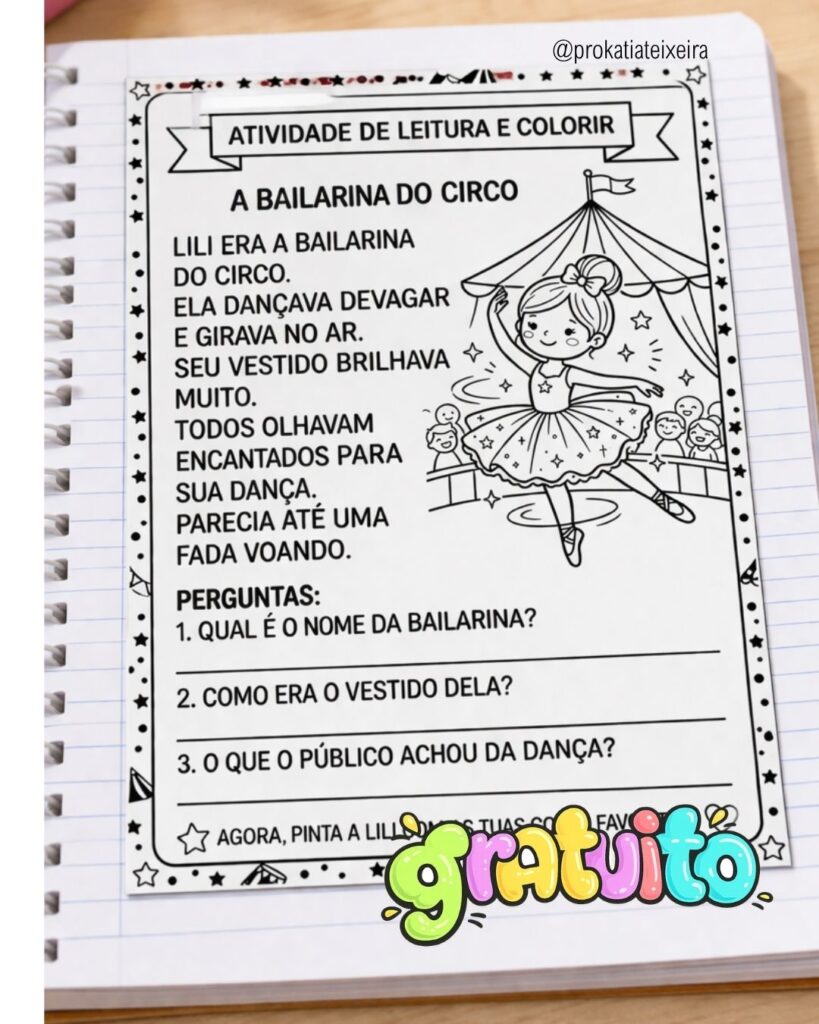 O Dia do Circo está chegando e não há forma melhor de celebrar essa data mágica do que com atividades que estimulem a imaginação e a alfabetização das crianças. Hoje, trazemos um presente especial: uma atividade de leitura e colorir com o tema “A Bailarina do Circo”.