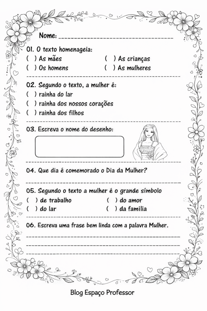 Poema com atividades Dia Internacional da Mulher