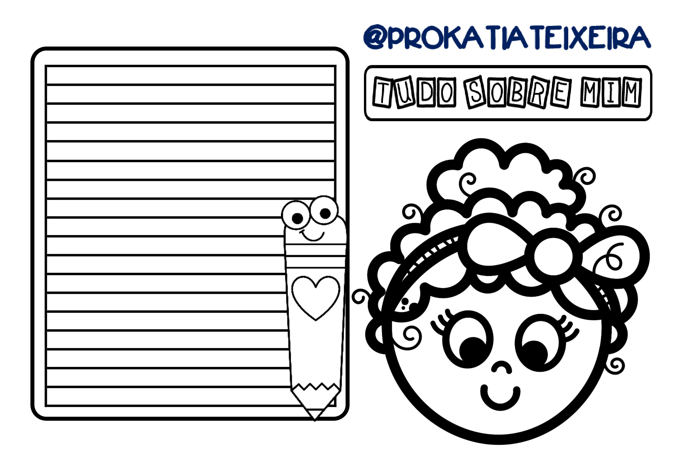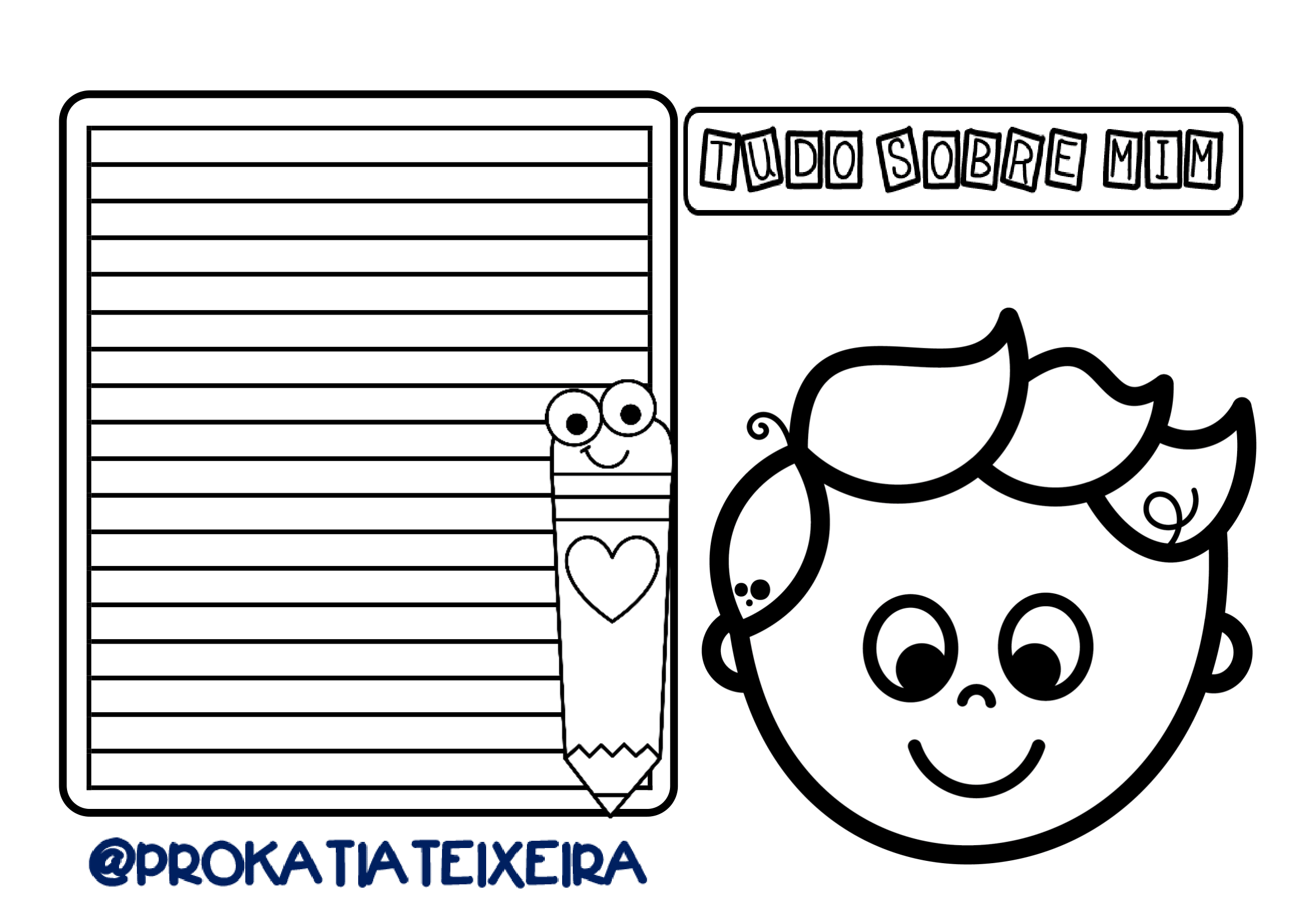 Então desta vez a atividade Tudo sobre mim é direcionada aos alunos das turmas de 4º e 5º anos. Por isso, pensei em algo onde o aluno pudesse escrever sem direcionamento de perguntas como são as outras para turmas de alfabetização: Tudo sobre mim. Atividade interativa volta às aulas 2020